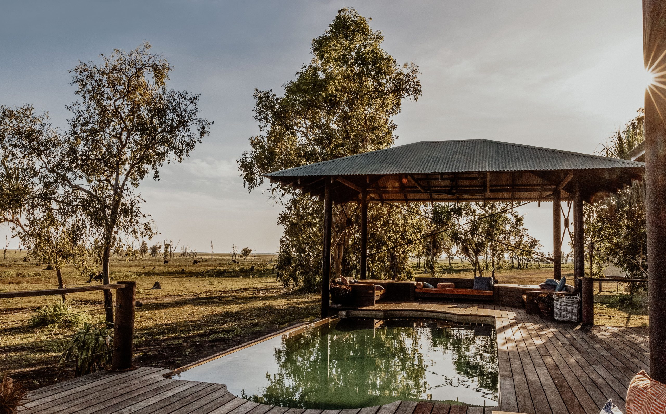 Bamurru Plains is seamlessly nestled within the environment that wildlife will come to you. Watch hundreds of birds take flight from around the infinity-edge pool, see buffalo roam and Agile wallabies hop past your bungalow as you wake to sounds of thousands of Magpie Geese. If all you want to do is switch off, chill out and get away from the hustle and bustle of life then Bamurru is one of the best places in the world to do it.