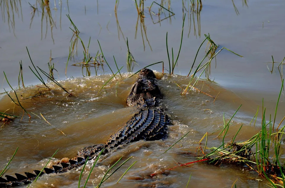 The Sampan Creek, which is part of the Mary River System, forms the western boundary of the station. During the dry season the crocodiles will regulate their body temperatures by basking on the banks in the sunlight.